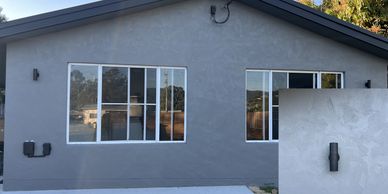 two-story addition, block work building, rendered sand and cement, sand finish render